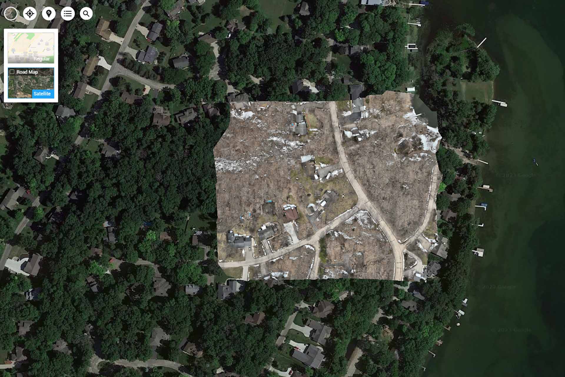 2D Ortho-rectified map overlaying Google Maps setellite imagry